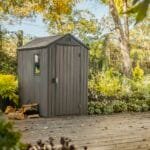 Masz za mało miejsca do przechowywania w swoim ogrodzie i chcesz rozwiązać ten problem szybko i niedrogo? Jeśli tak, szopa ogrodowa Darwin 46 marki Keter jest idealnym rozwiązaniem. Szopa oferuje dużo miejsca do przechowywania rowerów, narzędzi i/lub mebli ogrodowych. Podwójne panele o grubości 16 mm wyglądają jak drewniane, a przy tym zapewniają wygodę tworzywa sztucznego, odpornego na warunki atmosferyczne i promieniowanie UV. Panele podłogowe i wbudowany system wentylacyjny zapewnią dobrą wentylację wnętrza i pomogą chronić Twoje rzeczy przed wilgocią. Ta szopa wyposażona jest w okienko zapewniające dostęp światła dziennego. Ponadto każda szopa ogrodowa Darwin 46 jest łatwa w montażu bez użycia specjalistycznych narzędzi.