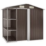 Szopa ogrodowa z regałem, brązowa, 205x130x183 cm, żelazna