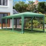 Ten świetny namiot imprezowy z solidną, żelazną ramą, wodoodpornym dachem i ośmioma ścianami z siatki stanowi idealne schronienie przed słońcem. Materiał premium: altana wykonana jest z polietylenu o wysokiej gęstości (HDPE), który chroni przed bezpośrednim działaniem promieni słonecznych i zapewnia przewiew. Tworzywo HDPE zostało specjalnie zabezpieczone, dzięki czemu jest odporne na działanie wody.Żelazna rama: wykonana z żelaza rama tego namiotu nadaje mu stabilność i trwałość.Praktyczna forma: altanka posiada osiem ścianek bocznych z siatki, które chronią przed dokuczliwymi insektami. Jedna ze ścian ma zamek błyskawiczny, umożliwiający wejście i łatwy dostęp.Szeroki zakres zastosowań: namiot imprezowy jest idealnym wyborem podczas imprez plenerowych, takich jak pokazy, wesela, imprezy, grille, festiwale i tak dalej. Uwaga:tego produktu NIE WOLNO używać podczas złej pogody, takiej jak silny wiatr, intensywne opady deszczu lub śniegu, burza itp.Każdy produkt jest dostarczany wraz z instrukcją montażu dla ułatwienia tej czynności.